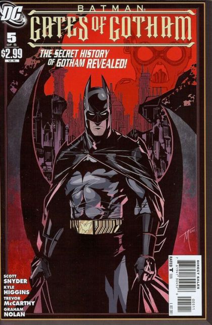 Written by SCOTT SNYDER and KYLE HIGGINS Art and covers by TREVOR MCCARTHY 1:25 Variant covers by DUSTIN NGUYEN It's Batman vs. The Architect! The downfall of a major Gotham family! The betrayal of Damian Wayne! It's all here in this final issue, plus the untold fate of Gotham City's first Super Villain! Be here as GATES OF GOTHAM sets the stage for a bold new direction in the Bat books! Retailers please note: These issues will ship with two covers each. Please see the Previews Order Form for more information. On sale AUGUST 17 5 of 5, 32 pg, FC, $2.99 US ? RATED T