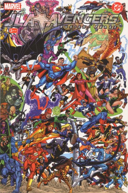 Written by KURT BUSIEK Cover & pencils by GEORGE PÉREZ. The most eagerly awaited story in comics' history continues! Featuring EVERY character who has ever been a member of both teams. Can you successfully identify every character featured? The Avengers and the JLA have confronted their foemen - now it's time to party! But as echoes of the past intrude on the present, something is terrifyingly wrong. Co-published by DC Comics! FC, 48pg/MARVEL PSR (3 of 4) $5.95 Cover price $5.95.