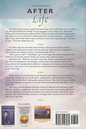 Internationally acclaimed psychic medium John Edward takes his talents to new levels and new countries in his fourth book, AFTER LIFE: Answers from the Other Side. Join John and a documentary crew "Down Under" in Australia and across the United States, where he demonstrates once again that grief, healing, and hope are eternally intertwined and universal. John answers your most often-asked questions about how the mediumship process works on the "other side," while taking you on the inside of his own personal life as a husband and new father. He shares what he's learned through his own recent, personal losses and demonstrates that you're never too late to forgive--and never too far away to love. In After Life, as he does on his highly rated hit show, Crossing Over with John Edward, John will also connect you with celebrities both here and on the other side--because, as John happily notes, there are no red-velvet ropes or VIP sections over there!