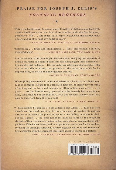 An illuminating study of the intertwined lives of the founders of the American republic--John Adams, Aaron Burr, Benjamin Franklin, Alexander Hamilton, Thomas Jefferson, James Madison, and George Washington.During the 1790s, which Ellis calls the most decisive decade in our nation's history, the greatest statesmen of their generation--and perhaps any--came together to define the new republic and direct its course for the coming centuries. Ellis focuses on six discrete moments that exemplify the most crucial issues facing the fragile new nation: Burr and Hamilton's deadly duel, and what may have really happened; Hamilton, Jefferson, and Madison's secret dinner, during which the seat of the permanent capital was determined in exchange for passage of Hamilton's financial plan; Franklin's petition to end the "peculiar institution" of slavery--his last public act--and Madison's efforts to quash it; Washington's precedent-setting Farewell Address, announcing his retirement from public office and offering his country some final advice; Adams's difficult term as Washington's successor and his alleged scheme to pass the presidency on to his son; and finally, Adams and Jefferson's renewed correspondence at the end of their lives, in which they compared their different views of the Revolution and its legacy.In a lively and engaging narrative, Ellis recounts the sometimes collaborative, sometimes archly antagonistic interactions between these men, and shows us the private characters behind the public personas: Adams, the ever-combative iconoclast, whose closest political collaborator was his wife, Abigail; Burr, crafty, smooth, and one of the most despised public figures of his time; Hamilton, whose audacious manner and deep economic savvy masked his humble origins; Jefferson, renowned for his eloquence, but so reclusive and taciturn that he rarely spoke more than a few sentences in public; Madison, small, sickly, and paralyzingly shy, yet one of the most effective debaters of his generation; and the stiffly formal Washington, the ultimate realist, larger-than-life, and America's only truly indispensable figure.Ellis argues that the checks and balances that permitted the infant American republic to endure were not primarily legal, constitutional, or institutional, but intensely personal, rooted in the dynamic interaction of leaders with quite different visions and values. Revisiting the old-fashioned idea that character matters, Founding Brothers informs our understanding of American politics--then and now--and gives us a new perspective on the unpredictable forces that shape history.