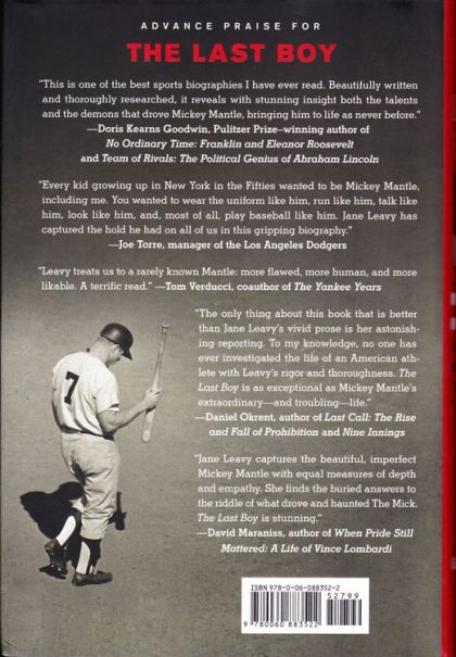 Jane Leavy, the acclaimed author of the New York Times bestseller Sandy Koufax: A Lefty's Legacy, returns with a biography of an American original—number 7, Mickey Mantle. Drawing on more than five hundred interviews with friends and family, teammates, and opponents, she delivers the definitive account of Mantle's life, mining the mythology of The Mick for the true story of a luminous and illustrious talent with an achingly damaged soul. Meticulously reported and elegantly written, The Last Boy is a baseball tapestry that weaves together episodes from the author's weekend with The Mick in Atlantic City, where she interviewed her hero in 1983, after he was banned from baseball, with reminiscences from friends and family of the boy from Commerce, Oklahoma, who would lead the Yankees to seven world championships, be voted the American League's Most Valuable Player three times, win the Triple Crown in 1956, and duel teammate Roger Maris for Babe Ruth's home run crown in the summer of 1961—the same boy who would never grow up. As she did so memorably in her biography of Sandy Koufax, Jane Leavy transcends the hyperbole of hero worship to reveal the man behind the coast-to-coast smile, who grappled with a wrenching childhood, crippling injuries, and a genetic predisposition to alcoholism. In The Last Boy she chronicles her search to find out more about the person he was and, given what she discovers, to explain his mystifying hold on a generation of baseball fans, who were seduced by that lopsided, gap-toothed grin. It is an uncommon biography, with literary overtones: not only a portrait of an icon, but an investigation of memory itself. How long was the Tape Measure Home Run? Did Mantle swing the same way right-handed and left-handed? What really happened to his knee in the 1951 World Series? What happened to the red-haired, freckle-faced boy known back home as Mickey Charles? "I believe in memory, not memorabilia," Leavy writes in her preface. But in The Last Boy, she discovers that what we remember of our heroes—and even what they remember of themselves—is only where the story begins.