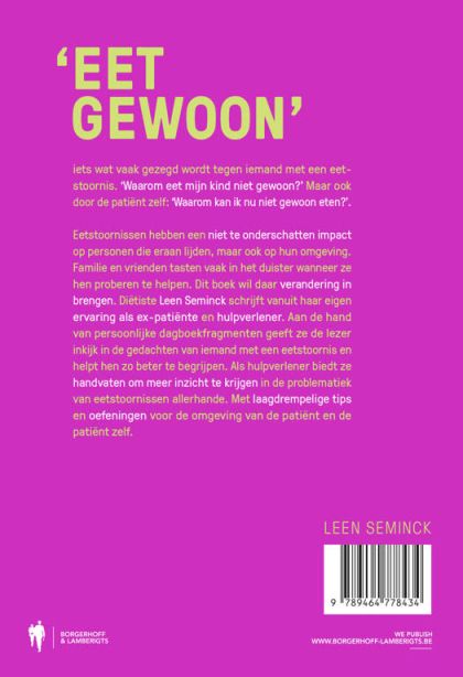 Dit boek werd geschreven door Leen Seminck, die zelf met een eetstoornis geworsteld heeft en ondertussen werkzaam is als diëtiste en hulpverlener. Naast haar opleiding als diëtiste heeft zij ook nog psychologische opleidingen gevolgd, onder meer die tot ACT-therapeut, een behandelingsvorm die wel vaker wordt toegepast bij mensen met een eetstoornis. Daarom is zij, vooral vanuit eigen ervaring, de persoon bij uitstek om toe te lichten hoe het is om met een eetstoornis te leven en er ook van te herstellen.