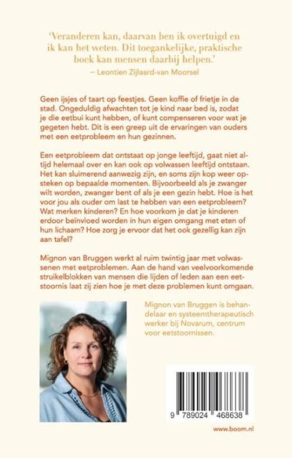 Van Bruggen laat zien dat een eetstoornis niet altijd “overgaat” na de puberteit, maar op latere momenten kan opspelen – bijvoorbeeld bij zwangerschap of gezinsvorming. De impact van een eetprobleem reikt verder dan de persoon zelf; het beïnvloedt het hele gezin. Met deze focus vult het boek een belangrijke leemte in de literatuur.