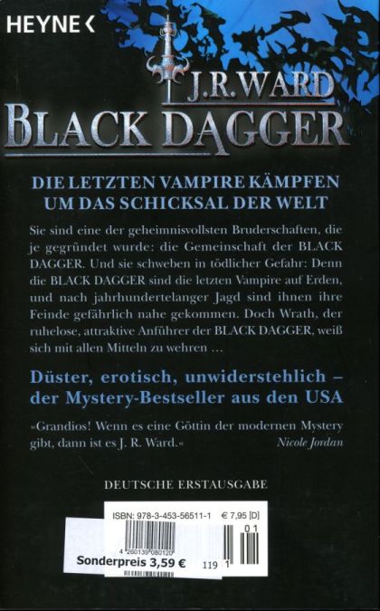 Anführer der Black Dagger ist der (fast) blinde König Wrath (letzter reinblütiger Vampir), der seinen Thron Jahrhunderte lang ignoriert.