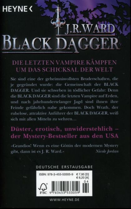 Anführer der Black Dagger ist der (fast) blinde König Wrath (letzter reinblütiger Vampir), der seinen Thron Jahrhunderte lang ignoriert.