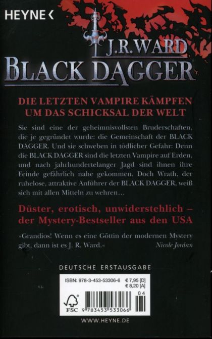 Anführer der Black Dagger ist der (fast) blinde König Wrath (letzter reinblütiger Vampir), der seinen Thron Jahrhunderte lang ignoriert.
