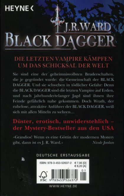 Sie sind eine der geheimnisvollsten Bruderschaften, die je gegründet wurde: die Gemeinschaft der BLACK DAGGER. Und sie schwegen in tödlicher Gefahr: Denn die BLACK DAGGER sind die letzten Vampire auf Erden, und nach jahrhundertelanger Jagd sind ihnen ihre Feinde gefährlich nahe gekommen. Doch Wrath, der ruhelose, attraktive Anführer der BLACK DAGGER, weiß sich mit allen Mitteln zu wehren ...