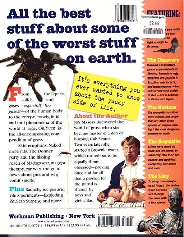Kids love stuff that's gross. From the liquids, solids, and gases--especially the gases!--or their own bodies to the creepy, crawly, slimy, slithery, fetid, and feculent phenomena in the world at large, kids with a curious bent just can't get enough. Oh, Yuck! The Encyclopedia of Everything Nasty brings together, in one book, all the good things about some of the baddest things on Earth.Exhaustively researched and impeccably scientific, yet written with a lively lack of earnestness, Oh, Yuck! is an ants to zits encyclopedic compendium covering people, animals, insects, plants, foods, and more. Here are vampire bats, which sip blood and pee at the same time so that they'll always be light enough to fly away; and slime eels, wreathed in mucus and eating fellow fish from the inside out. Oh, Yuck! explains why vomit smells; where dandruff comes from; what pus is all about; and why maggots adore rotting meant. Other features include gross recipes, putrid projects, 10 foods that make you airborne, and more.With hundreds of cartoon illustrations and real-life photographs, Oh, Yuck! is the complete guide to the irresistible--at least to an 8-to-12 year old--underbelly of life.