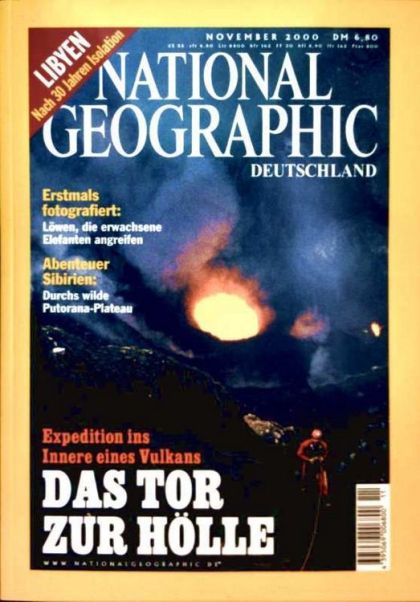 National Geographic 11/2000 Das Tor zur Hölle Expedition ins Innere eines Vulkans - Erstmals fotografiert Löwen die erwachsene Elefanten angreifen - Abenteuer Sibirien Putorana-Plateau