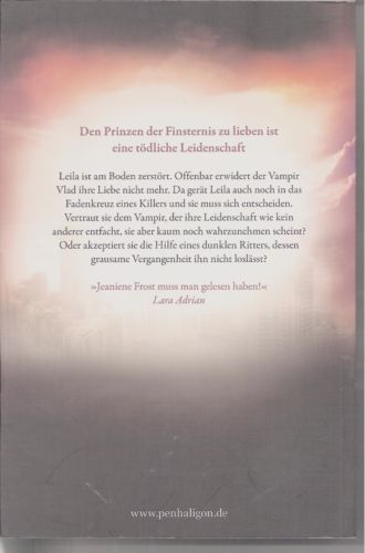 Den Prinzen der Finsternis zu lieben ist eine tödliche Leidenschaft Leila ist am Boden zerstört. Offenbar erwidert der Vampir Vlad ihre Liebe nicht mehr. Da gerät Leila auch noch in das Fadenkreuz eines Killers und sie muss sich entscheiden. Vertraut sie dem Vampir, der ihre Leidenschaft wie kein anderer entfacht, sie aber kaum noch wahrzunehmen schein? Oder akzeptiert sie die Hilfe eines dunklen Ritters, dessen grausame Vergangenheit ihn nicht loslässt? Leilas übernatürliche Fähigkeiten haben sie verlassen. Und als sei das nicht schlimm genug, erwidert der Vampir Vlad ihre Liebe offenbar nicht mehr. Da gerät Leila auch noch in das Fadenkreuz eines Killers und sie muss sich entscheiden. Vertraut sie dem Vampir, der ihre Leidenschaft wie kein anderer entfacht, sie aber kaum noch wahrzunehmen scheint? Oder akzeptiert sie die Hilfe eines dunklen Ritters, dessen grausame Vergangenheit ihn nicht loslässt, und der keine größere Sehnsucht kennt, als für Leila mehr zu sein als nur ein Freund. Welche Wahl sie auch trifft – ein falscher Schritt bedeutet für Leila ewige Verdammnis.