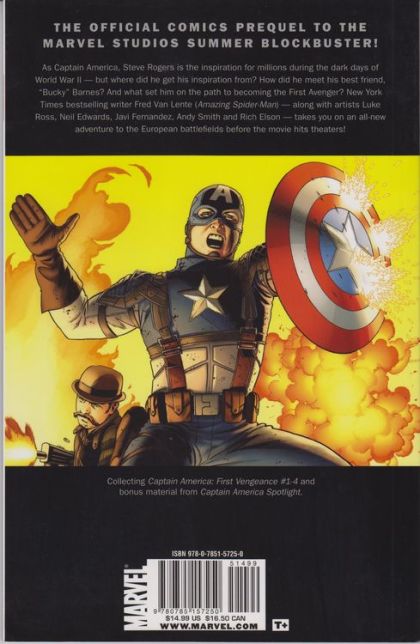 The official comics prequel to the Marvel Studios summer blockbuster begins here! As Captain America, Steve Rogers is the inspiration for millions during the dark days of World War Two - but where did he get his inspiration from? How did he meet his best friend, "Bucky" Barnes? And what set him on the path to becoming the First Avenger? New York Times bestselling writer Fred Van Lente (AMAZING SPIDER-MAN) and star artists Luke Ross (CAPTAIN AMERICA) and Neil Edwards (FANTASTIC FOUR) take you on an all-new adventure to the European battlefields before the movie hits theaters! Collecting CAPTAIN AMERICA: FIRST VENGEANCE #1-4 and material from CAPTAIN AMERICA SPOTLIGHT.
