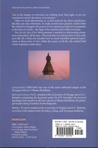 Just as the images on television are nothing more than light, so are our experiences merely the dance of awareness. Often we form attachments to or feel enslaved by these experiences. But they are only reflections. As easily as television pictures vanish when the channel is changed, the power of our experiences fades if we penetrate to the heart of realitythe light of the natural mind within everyone.You Are the Eyes of the World presents a method for discovering awareness everywhere, all the time. This book does not discuss how to turn ordinary life off, and it does not describe how to create beautiful spiritual experiences; it shows how to live within the source of all life, the unified field where experience takes place.