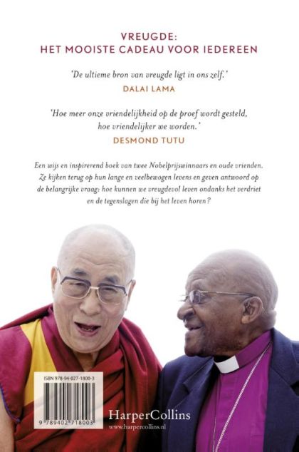 Twee van de grootste geestelijke leiders van onze tijd delen hun wijsheid en inzichten over hoe we diepe vreugde kunnen vinden en vasthouden ondanks de tegenslagen en uitdagingen die het leven in zich draagt. Ter gelegenheid van de 80e verjaardag van de Dalai Lama reisde Desmond Tutu naar Dharamsala waar de beide vrienden hun wijsheid en inzichten deelden over de manier waarop wij een zo vreugdevol leven kunnen leiden, ook in tijden van tegenspoed. Douglas Abrams was bij deze gesprekken aanwezig en verwerkte ze tot een boek. Een boek waar je blij van wordt, alleen al om de liefdevolle manier waarop deze oude wijze mannen met elkaar omgaan, de levensvreugde en speelsheid die ze delen en de respectvolle manier waarop ze hun verschil van inzicht bespreken, want de boeddhistische en de christelijke traditie hebben naast veel overeenkomsten ook duidelijke verschillen. Het is mooi om te lezen hoe onbelangrijke verschillen kunnen worden, want hun kernboodschap is dezelfde: vreugdevol leven bereik je door anderen vreugde te brengen.