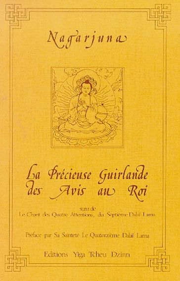 L’un des plus grands génies de la logique et de la philosophie, Nagarjuna, décrit sous une forme concise l’essentiel de la vue Madyamika, la voie du milieu. Composé à l’origine à l’usage d’un roi, ce livre est en fait un guide pour le laïc vers l’illumination. L’ouvrage est complété par “Le Chant des Quatre Attentions” du septième Dalaï-Lama.