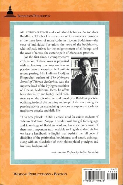 All religions teach codes of ethical behavior. So too does Buddhism. This books is a translation of an indispensable exposition of the three sets of vows that are central to Tibetan Buddhist codes of discipline--the pratimoksa vows of individual liberation; the vows of the bodhisattva, who selflessly strives for the liberation of all beings; the vows of the esoteric path of tantra.Here, the late Dudjom Rinpoche provides his authoritative commentary on the role of ethics and morality in Buddhist practice, outlining in detail the meaning and scope of the vows, and giving practical advice on maintaining the vows as supportive tools in the journey toward enlightenment.