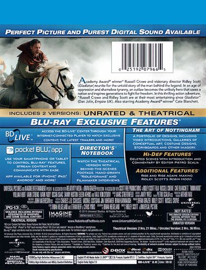 When soldier Robin happens upon the dying Robert of Loxley, he promises to return the man's sword to his family in Nottingham. There, he assumes Robert's identity; romances his widow, Marion; and draws the ire of the town's sheriff and King John's henchman, Godfrey.