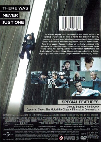 The fourth installment of the highly successful Bourne series sidelines main character Jason Bourne in order to focus on a fellow estranged assassin Aaron Cross (Jeremy Renner). The story centers on new CIA operative, Aaron Cross as he experiences life-or-death stakes that have been triggered by the previous actions of Jason Bourne. Edward Norton and Rachel Weisz co-star, with Joan Allen and Albert Finney reprising their roles from the previous films.
