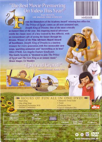 With his gift of dream interpretation and his brilliantly colored coat, Joseph inspires jealousy in his brothers and is sold into slavery. This animated retelling of the story from the Bible's Book of Genesis boasts first-rate animation and excellent voice work from Affleck, Mark Hamill and Jody Benson. Wholesome without being preachy, Joseph: King of Dreams will delight the entire family.