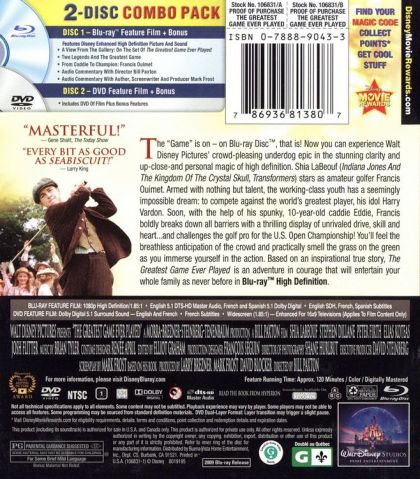 The Greatest Game Ever Played is a 2005 biographical sports film based on the life of 20 year old Francis Ouimet who defeated his idol,1900 US Open Champion, Harry Vardon. The film is directed by Bill Paxton; Shia LaBeouf plays the role of Ouimet. It is distributed by Walt Disney Studios. The film' screenplay was adapted by Mark Frost from his book, The Greatest Game Ever Played: Harry Vardon, Francis Ouimet, and the Birth of Modern Golf. It was shot in Montreal, Quebec.The film opened at #9 at the U.S. box office in its opening weekend grossing US$3,657,322.Set in 1913, the film is about golfer Francis Ouimet (Shia LaBeouf), an amateur who was expected to fare poorly at the 1913 U.S. Open, and who was supposedly incapable of competing against professionals.