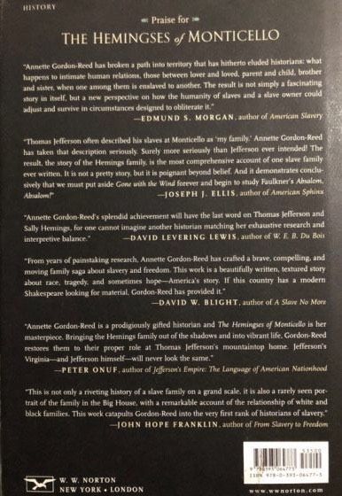 As The Hemingses of Monticello makes vividly clear, Monticello can no longer be known only as the home of a remarkable American leader, the author of the Declaration of Independence; nor can the story of the Hemingses, whose close blood ties to our third president have been expunged from history until very recently, be left out of the telling of America’s story. With its empathetic and insightful consideration of human beings acting in almost unimaginably difficult and complicated family circumstances, The Hemingses of Monticello is history as great literature. It is a remarkable achievement.