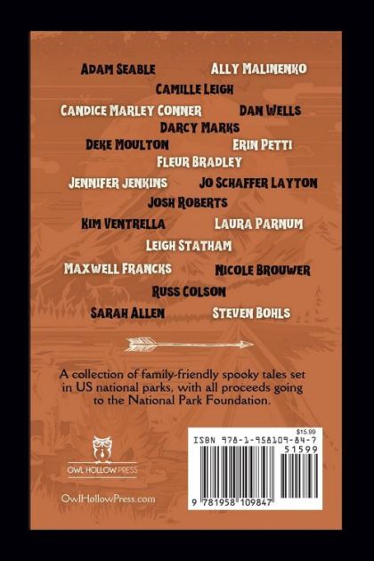 A collection of family-friendly spooky tales set in US national parks, with all proceeds going to the National Park Foundation.Many of the U.S. national parks are huge swaths of wild and barely explored land. While it's true millions visit the parks each year, most people stay within a mile or so of the popular attractions. Not many people go into the hinterlands where maybe, just maybe, there are all kinds of monsters.It's that wildness, that invitation to contemplate the mysteries of life, that makes the national parks so important to the health of our nation's psyche...as well as something to give you chills and keep you up late at night.Join us for a collection of scary stories set in national parks, where 21 amazing authors have chosen a national park, monument, or historic site as a setting for a spooky story. Stories you can read by the campfire, that will haunt your dreams as you lie in your tent, listening to the sounds of nature in the darkness.A collection of tales that is sure to both entertain and raise awareness of our precious national lands, so we and future generations can continue to enjoy them, including stories from Dan Wells, Jo Schaffer Layton, Fleur Bradley, Ally Malinenko, Josh Roberts, Steven Bohls, Kim Ventrella, Darcy Marks, Deke Moulton, Erin Petti, Jennifer Jenkins, Laura Parnum, Nicole Brouwer, Sarah Allen, Leigh Statham, Candice Marley Conner, Russ Colson, Adam Seable, Maxwell Francks, and Camille Leigh, with an introduction by Peter Black.Are you ready to try some S'more Spooky Stories? Come on. We dare you.