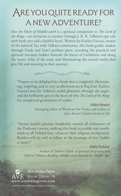 Into the Heart of Middle-earth is a spiritual companion to J. R. R. Tolkien’s The Lord of the Rings, guiding readers through Frodo and Sam’s perilous quest while uncovering the practical and spiritual treasures hidden throughout Tolkien’s world. Written by Kaitlyn Facista, creator of the beloved Tea with Tolkien community, this book has helped thousands of readers explore the Catholic and moral truths woven into Middle-earth.
