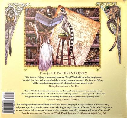 The Katurran Odyssey is a remarkable visual achievement, filled with spectacle, fantasy, and wonder on every page. This epic tale of faith, hope, and selfless heroism is illuminated by the stunning illustrations of Terryl Whitlatch, the principal creature designer for the Star Wars prequels, and is brought to dynamic life by the storytelling of screenwriter and author David Michael Wieger.Bo-hibba is a remote island in a faraway time and place that is populated by animals who are at once fantastic and startlingly real. The island's survival is threatened by the Long Winter, and not even the High Priest's ancient ceremony of renewal can put an end to the suffering from the hunger and the cold. Katook, a small but courageous young lemur, lives in the village of Kattakuk. When he dares to enter a forbidden area on the island and witnesses a shocking act, the outraged priests banish him from the island forever. Forced to journey across the vast sea in search of a new home, Katook encounters great perils and marvels on his quest and undergoes profound tests of trust and friendship. At last, he finds the place where the secret of the Long Winter is revealed and where he must confront his greatest fear if he is to save his family and his island home. The Katurran Odyssey creates a mythic world imbued with beauty, adventure, and transcendent imagination.