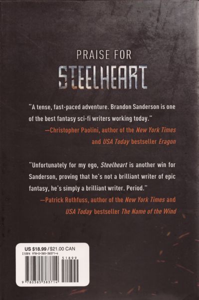 Now, in what was once Chicago, an astonishingly powerful Epic named Steelheart has installed himself as emperor. Steelheart possesses the strength of ten men and can control the elements. It is said that no bullet can harm him, no sword can split his skin, and no fire can burn him. He is invincible. Nobody fights back . . . nobody but the Reckoners.