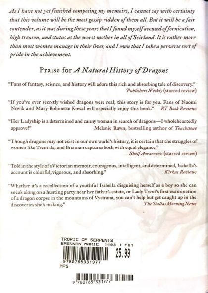 The expedition is not an easy one. Accompanied by both an old associate and a runaway heiress, Isabella must brave oppressive heat, merciless fevers, palace intrigues, gossip, and other hazards in order to satisfy her boundless fascination with all things draconian, even if it means venturing deep into the forbidden jungle known as the Green Hell . . . where her courage, resourcefulness, and scientific curiosity will be tested as never before.