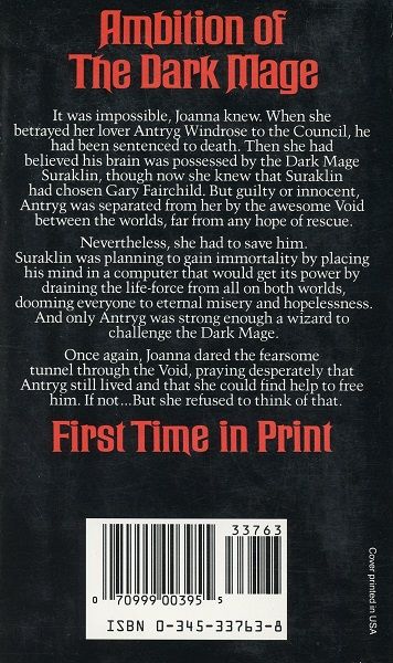 It was impossible, Joanna knew. When she betrayed her lover Antryg Windrose to the Council, he had been sentenced to death. Then she had believed his brain was possessed by the Dark Mage Suraklin, though now she knew that Suraklin had chosen Gary Fairchild. But guilty or innocent, Antryg was separated from her by the awesome Void between the worlds, far from any hope of rescue. Nevertheless, she had to save him. Suraklin was planning to gain immortality by placing his mind in a computer that would get its power by draining the life-force from all on both worlds, dooming everyone to eternal misery and hopelessness. And only Antryg was strong enough a wizard to challenge the Dark Mage. Once again, Joanna dared the fearsome tunnel through the Void, praying desperately that Antryg still lived and that she could find help to free him. If not...But she refused to think of that.