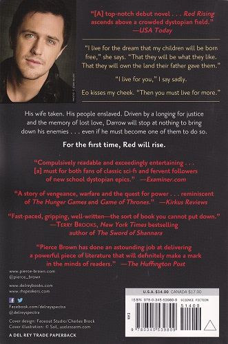 Darrow is a Red, a member of the lowest caste in the color-coded society of the future. Like his fellow Reds, he works all day, believing that he and his people are making the surface of Mars livable for future generations. Yet he spends his life willingly, knowing that his blood and sweat will one day result in a better world for his children.