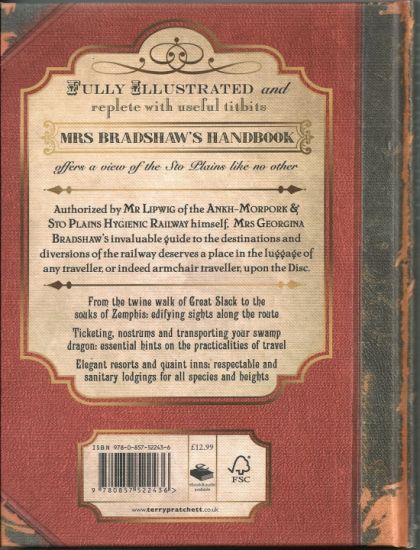 A Discworld artefact -- Georgina Bradshaw's guide to the railways of Raising Steam. Authorised by Mr. Lipwig of the Ankh-Morpork and Sto Plains Hygienic Railway himself, Mrs. Georgina Bradshaw's invaluable guide to the destinations and diversions of the railway deserves a place in the luggage of any traveller, or indeed armchair traveller, upon the Disc. Mrs. Bradshaw has travelled the length of the great permanent way to Quirm, Sto Lat and even as far as Ohulan Cutash, investigating the most edifying sights, respectable lodgings and essential hints on the practicalities of travel upon the wonder of the age. Sample the delights of Dimmuck, the pleasures of Little Swelling, the charm of Shankydoodle, and enough cabbage in all its many quises to satisfy the keenest brassica connoisseur. • Beautifully produced gift-sized hardcover with black and white illustrations throughout.