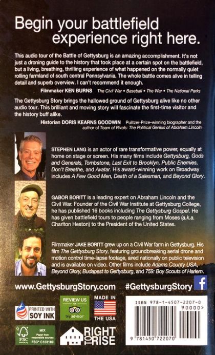 This new audio tour and guide presents a gripping journey through the Gettysburg Battlefield following the official National Park Auto Tour route. It is based on the works of renowned historian and author, Gabor Boritt. Founder of the Civil War Institute at Gettysburg College, for over thirty years he has given battlefield tours to luminaries ranging from Moses (aka Charlton Heston) to the President of the United States - and many others. Now this unique experience is brought to you by acclaimed actor Stephen Lang ( Colonel Quaritch in 'Avatar,' Stonewall Jackson in 'Gods & Generals,' Ike Clanton in 'Tombstone,' and George Pickett in 'Gettysburg'). It is written and produced by filmmaker Jake Boritt. For new visitors and buffs alike, Lang's stunning performance brings alive the story of the battle and Lincoln's nation-changing address unlike anything you have ever heard before. The Gettysburg Battlefield Auto Tour Features 3 CDs covering each day of the battle with 3 tour options ranging from 2 to 3 hours. The companion 72 page full color guide is packed with art, photos, text and more. The 14 full color maps are stunning, easy to understand and feature panoramic orientation guides to help visitors quickly get their bearings.