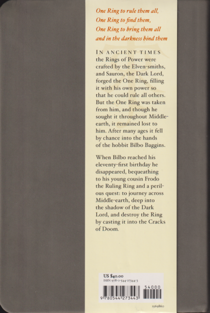 When Bilbo reached his eleventy-first birthday he disappeared, bequeathing to his young cousin Frodo the Ruling Ring and a perilous quest: to journey across Middle-earth, deep into the shadow of the Dark Lord, and destroy the Ring by casting it into the Cracks of Doom.