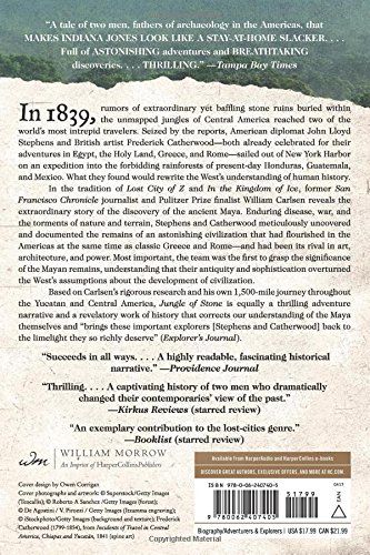 Today, the tables are turned: the Maya are justly famous, if sometimes misunderstood, while Stephens and Catherwood have been nearly forgotten. Based on Carlsen’s rigorous research and his own 1,500-mile journey throughout the Yucatan and Central America, Jungle of Stone is equally a thrilling adventure narrative and a revelatory work of history that corrects our understanding of Stephens, Catherwood, and the Maya themselves.