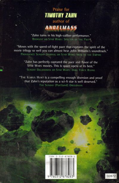 Timothy Zahn, renowned for his bestselling Cobra and Black Collar series, and for his hugely successful Star Wars "TM" trilogy, takes a giant step with a novel sure to thrill science fiction readers everywhere.Mankind has colonized many planets, most under the control of Earth and its Pax Comitus. One group of colonies, the Empyrean, has resisted the Pax, and now the Pax has sent a spy, Kostas, to try to alter the balance of power there.Since the discovery of the black hole called Angelmass, the Empyrean has used "angels", particles emitted by the black hole, to keep their officials honest. Each official carries an "angel" held in a special containment field. A mysterious quality of these imprisoned particles makes it impossible for the bearer to act unethically.The Pax is sure that these "angels" must be part of an alien plot to subvert the Empyrean, and Kostas is sent to see what's going on. Kostas and a grifter named Chandris, who convinces him that she wants to help, though she's really after nothing but money, team up with a pair of angel hunters. The four become the focus of the conflict between the Pax and Empyrean, which culminates in a spectacular battle near Angelmass itself.