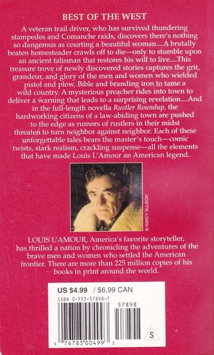 A veteran trail driver, who has survived thundering stampedes and Comanche raids, discovers there’s nothing so dangerous as courting a beautiful woman. A brutally beaten homesteader crawls off to die—only to stumble upon an ancient talisman that restores his will to live. A mysterious preacher rides into town to deliver a warning that leads to a surprising revelation. And in the full-length novella Rustler Roundup, the hardworking citizens of a law-abiding town are pushed to the edge as rumors of rustlers in their midst threaten to turn neighbor against neighbor.This treasure trove of stories captures the grit, grandeur, and glory of the men and women who wielded pistol and plow, Bible and branding iron, to tame a wild country. Each of these unforgettable tales bears the master’s touch—comic twists, stark realism, crackling suspense—all the elements that have made Louis L’Amour an American legend.