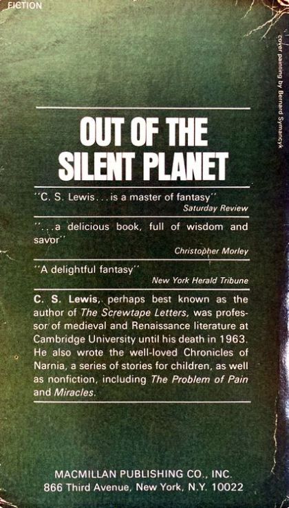 Out of the Silent Planet begins the adventures of the remarkable Dr. Ransom. Here, that estimable man is abducted by a megalomaniacal physicist and his accomplice and taken via spaceship to the red planet of Malacandra. The two men are in need of a human sacrifice, and Dr. Ransom would seem to fit the bill. Once on the planet, however, Ransom eludes his captors, risking his life and his chances of returning to Earth, becoming a stranger in a land that is enchanting in its difference from Earth and instructive in its similarity. First published in 1943, Out of the Silent Planet remains a mysterious and suspenseful tour de force.