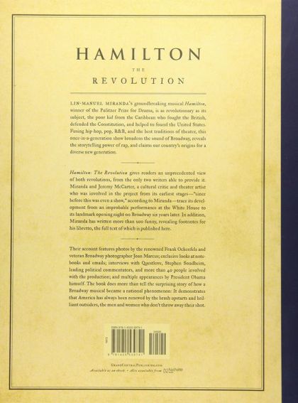 HAMILTON: THE REVOLUTION gives readers an unprecedented view of both revolutions, from the only two writers able to provide it. Miranda, along with Jeremy McCarter, a cultural critic and theater artist who was involved in the project from its earliest stages--"since before this was even a show," according to Miranda--traces its development from an improbable performance at the White House to its landmark opening night on Broadway six years later. In addition, Miranda has written more than 200 funny, revealing footnotes for his award-winning libretto, the full text of which is published here.