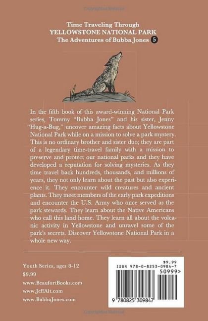 2024 American Book Fest Best Book Award for Children's Fiction In the fifth book of this award-winning national park series, Tommy "Bubba Jones" and his sister, Jenny "Hug-A-Bug," uncover amazing facts about Yellowstone National Park while on a mission to solve a park mystery. This is no ordinary brother and sister duo; they are part of a legendary time travel family with a mission to preserve and protect our national parks and they have developed a reputation for solving mysteries. As they time travel back hundreds, thousands, and millions of years, they not only learn about the past but also experience it. They encounter wild creatures and ancient plants. They meet members of the early park expeditions and encounter the U.S. Army who once served as the park stewards. They learn about the Native Americans that call this land home. They learn all about the volcanic activity and unravel some of the park's secrets. Discover Yellowstone National Park in a whole new way.
