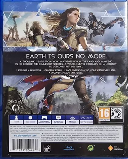 Horizon Zero Dawn, an exhilarating new action role playing game exclusively for the PlayStation 4 system, developed by the award winning Guerrilla Games, creatos of PlayStation's venerated Killzone franchise. As Horizon Zero Dawn's main protagonist Aloy, a skilled hunter, explore a vibrant and lush world inhabited by mysterious mechanized creatures.