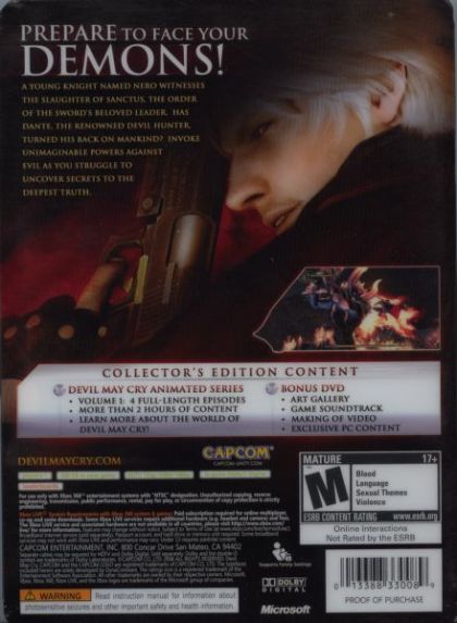 With the advanced graphical capabilities of the current-gen systems, high definition visuals and intricate detail come to life as players explore new and exotic locales. Dynamic action and undeniable style combine with explosive fighting options and a gripping story to produce the incomparable experience that only a Devil May Cry game can deliver.