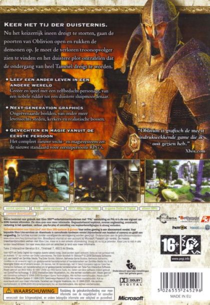 Oblivion is the quintessential role-playing game for the next generation and another leap forward in gaming. Step inside the most richly detailed and vibrant game-world ever created. Oblivion is the latest chapter in the epic and highly successful Elder Scrolls saga and utilizes next-generation video game hardware to fully immerse you into the experience. With a powerful combination of freeform gameplay and unprecedented graphics, you can unravel the main quest at your own pace or explore the vast world and find your own challenges.