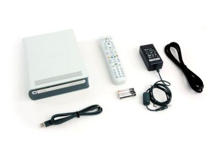 The HD DVD player connects to the Xbox 360 using a USB connection. All of the audio and video processing and output come from Xbox 360 itself. The unit can also function as a USB hub, with 2 ports on the rear. It also includes a clip for attaching the wireless network adapter to it, much like what Xbox 360 consoles of the time had. The device also has an integrated 256 MB memory unit which is used for storage of HD DVD data and is accessible to the user for saving other data such as saved games.