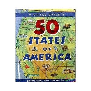 Provides information on each state, including its capital, when it became a state, its nickname, its state bird and flower, and other details, and depicts its major cities and rivers, animals, plants, and industries, and its flag.
