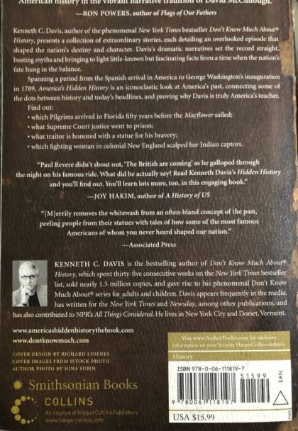 Kenneth C. Davis, author of the phenomenal New York Times bestseller Don't Know Much About History, presents a collection of extraordinary stories, each detailing an overlooked episode that shaped the nation's destiny and character. Davis's dramatic narratives set the record straight, busting myths and bringing to light little-known but fascinating facts from a time when the nation's fate hung in the balance. Spanning a period from the Spanish arrival in America to George Washington's inauguration in 1789, America's Hidden History is an iconoclastic look at America's past, connecting some of the dots between history and today's headlines, and proving why Davis is truly America's teacher. Find out: Which Pilgrims arrived in Florida fifty years before the Mayflower sailed. What Supreme Court Justice went to prison. What traitor is honored with a statue for his bravery. Which fighting woman in colonial New England scalped her Indian captors.