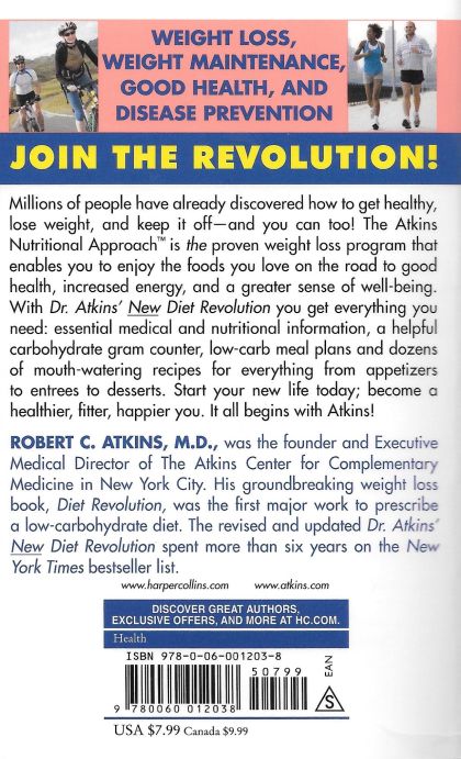 Millions of people have already discovered how to get healthy, lose weight, and keep it off—and you can too! The Atkins Nutritional Approach™ is the proven weight loss program that enables you to enjoy the foods you love on the road to good health, increased energy, and a greater sense of well-being. With Dr. Atkins' New Diet Revolution you get everything you need: essential medical and nutritional information, a helpful carbohydrate gram counter, low-carb meal plans and dozens of mouth-watering recipes for everything from appetizers to entrees to desserts. Start your new life today; become a healthier, fitter, happier you. It all begins with Atkins!