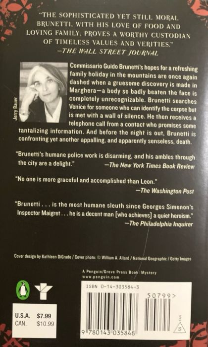 Donna Leon's Commissario Guido Brunetti series grows more popular in America with the publication of every new novel. In this installment, Brunetti's hopes of a refreshing family holiday in the mountains are once again dashed when a gruesome discovery is made in Marghera--a body so badly beaten the face is completely unrecognizable. Brunetti searches Venice for someone who can identify the corpse, but he is met with a wall of silence. Then he receives a telephone call from a contact who promises some tantalizing information. And before the night is out, Brunetti is confronting yet another appalling, and apparently senseless, death.