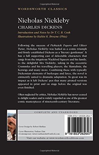 Introduction and Notes by Dr T.C.B. Cook Illustrations by Hablot K. Browne (Phiz). Following the success of Pickwick Papers and Oliver Twist, Nicholas Nickleby was hailed as a comic triumph and firmly established Dickens as a 'literary gentleman'. It has a full supporting cast of delectable characters that range from the iniquitous Wackford Squeers and his family, to the delightful Mrs Nickleby, taking in the eccentric Crummles and his travelling players, the Mantalinis, the Kenwigs and many more. Combining these with typically Dickensian elements of burlesque and farce, the novel is eminently suited to dramatic adaptation. So great was the impact as it left Dickens' pen that many pirated versions appeared in print before the original was even finished. Often neglected by critics, Nicholas Nickleby has never ceased to delight readers and is widely regarded as one of the greatest comic masterpieces of nineteenth-centure literature.