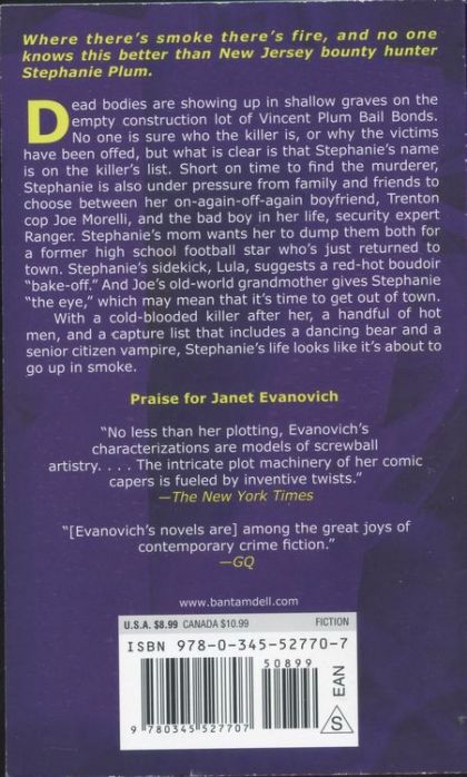 From #1 New York Times bestselling author Janet Evanovich: Where there’s smoke there’s fire, and no one knows this better than New Jersey bounty hunter Stephanie Plum! “The most popular mystery writer alive.”—The New York TimesDead bodies are showing up in shallow graves on the empty construction lot of Vincent Plum Bail Bonds. No one is sure who the killer is, or why the victims have been offed, but what is clear is that Stephanie’s name is on the killer’s list.Short on time to find evidence proving the killer’s identity, Stephanie faces further complications when her family and friends decide that it’s time for her to choose between her longtime off-again-on-again boyfriend, Trenton cop Joe Morelli, and the bad boy in her life, security expert Ranger. Stephanie’s mom is encouraging Stephanie to dump them both and choose a former high school football star who’s just returned to town. Stephanie’s sidekick, Lula, is encouraging Stephanie to have a red-hot boudoir “bake-off.” And Grandma Bella, Morelli’s old-world grandmother, is encouraging Stephanie to move to a new state when she puts “the eye” on Stephanie.With a cold-blooded killer after her, a handful of hot men, and a capture list that includes a dancing bear and a senior citizen vampire, Stephanie’s life looks like it’s about to go up in smoke.